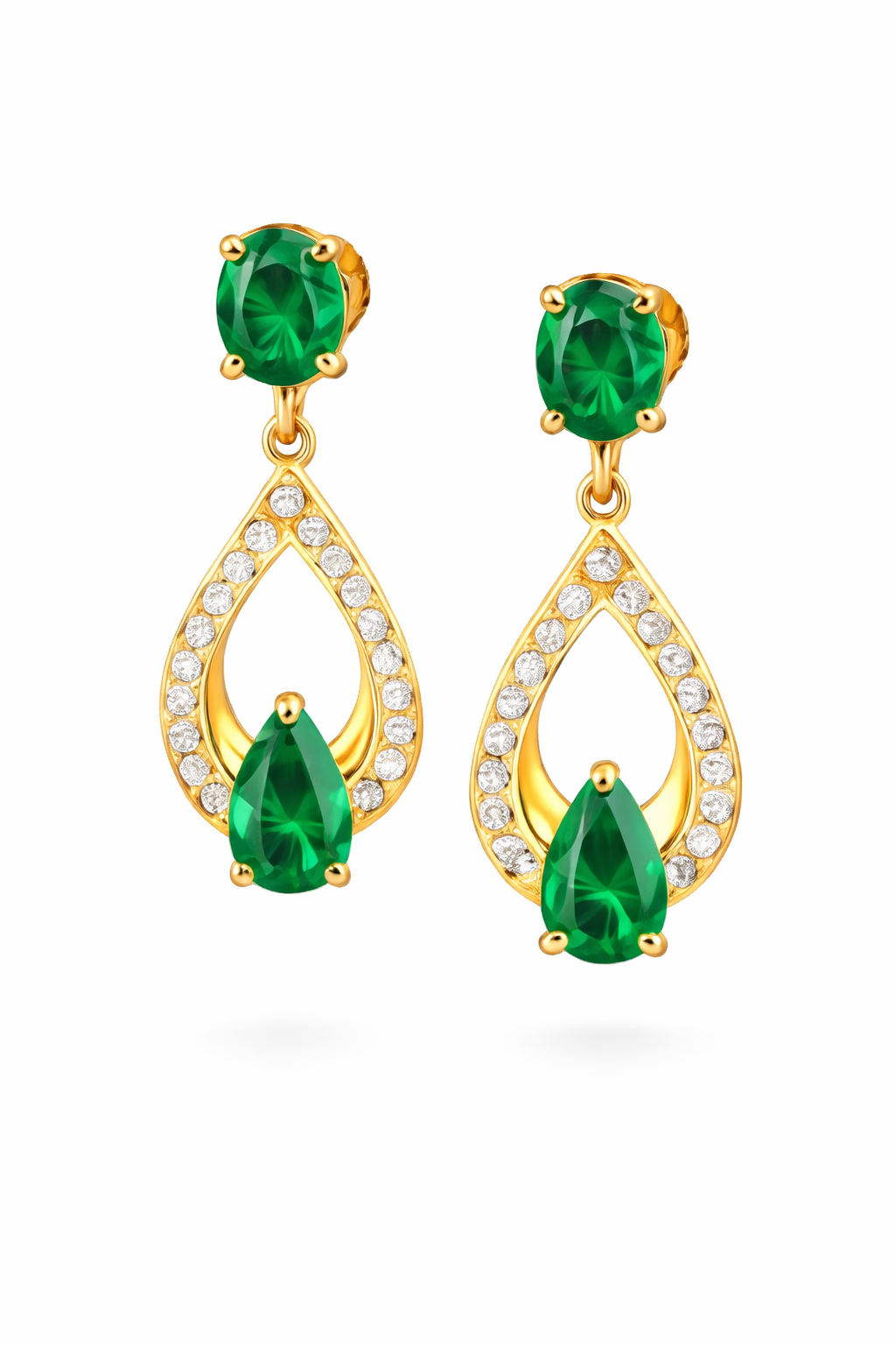 Green Emerald Drop Earrings in 18k Yellow Gold Jewelry
